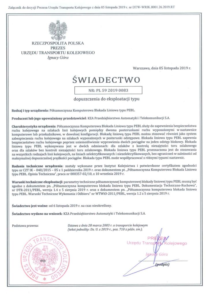 System półsamoczynnej komputerowej blokady liniowej PEBL